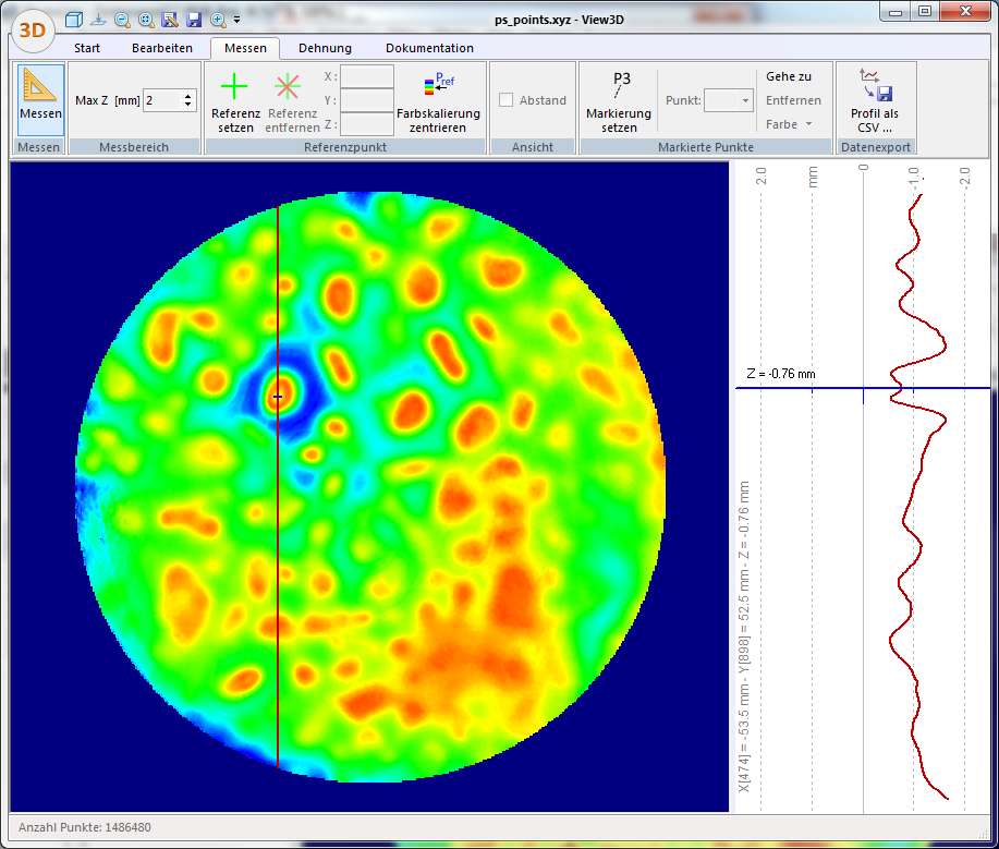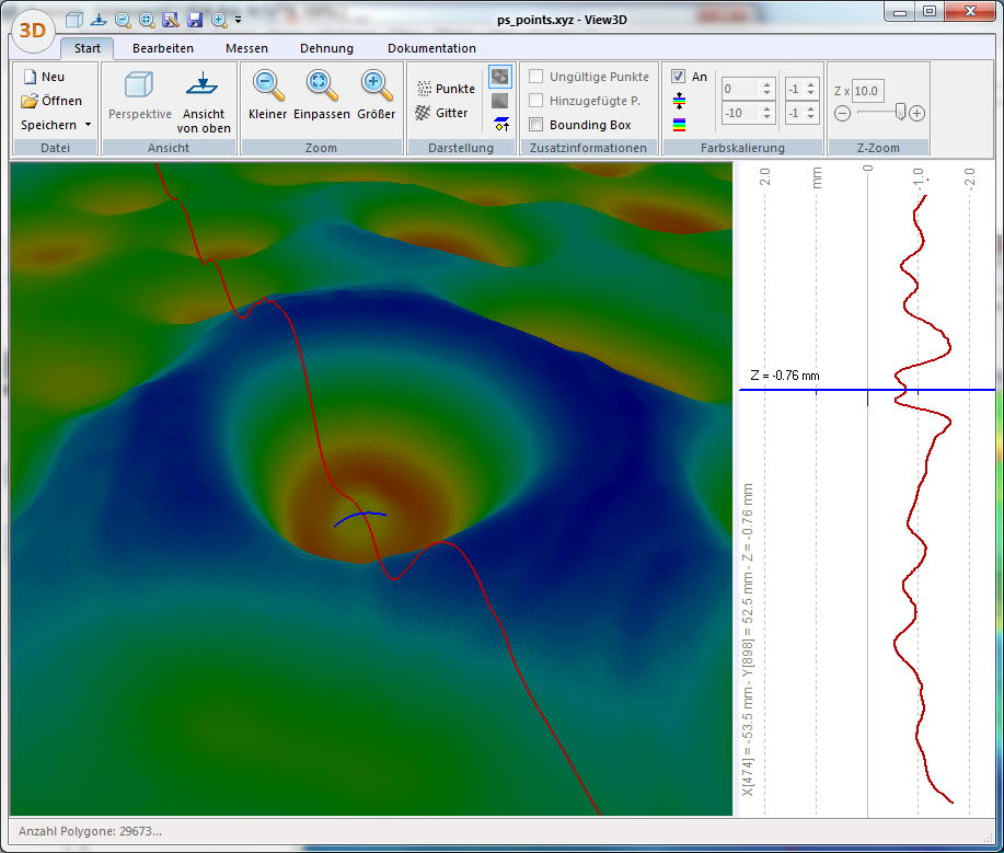 - Höhenmap (farbige Karte der vertikalen Messwerte)